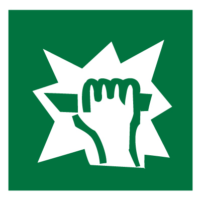 На дверях, стенах помещений и в других местах, где для доступа в помещение или выхода необходимо вскрыть определенную конструкцию, например разбить стеклянную панель и т.п.